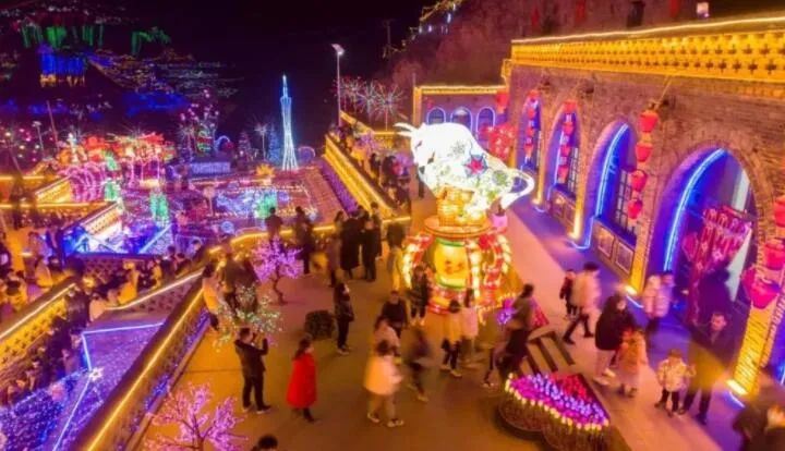 吕梁市交城县如金温泉景区推出的2021新春会将持续到正月十七,游客可在景区赏璀璨灯光,看民俗表演。