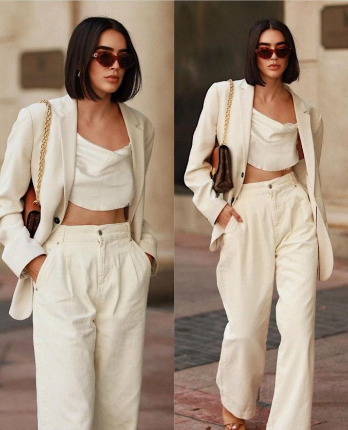 时尚博主Brittany Xavier搭配浅色系垫肩外套,更是绝绝子本子,清爽利落。无论是配色还是造型、剪裁、搭配,都完全符合最近的审美,是我今天最喜欢的一套。