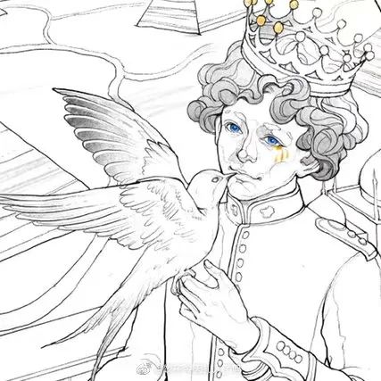 饺子的设计稿,灵感为童话《快乐王子》来源:微博@饺子今天扎人了吗