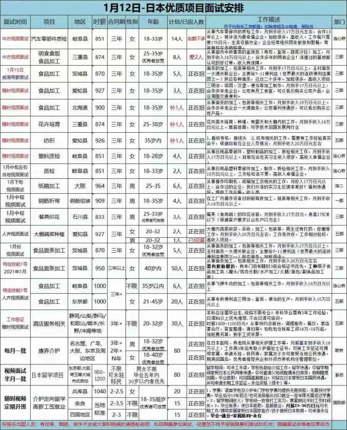 春节后预估需求量:100人,正月初六面试初八开始上班。