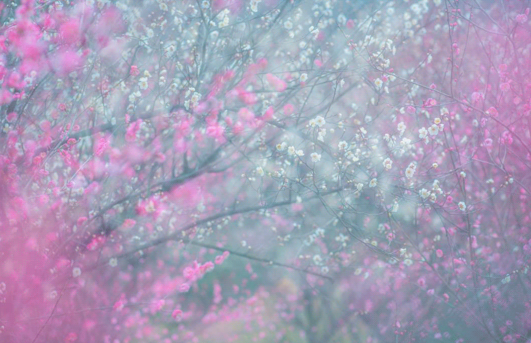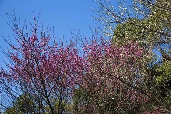 俞芬英/摄看一树树洁白的、粉红的、深红的梅花在此搭起了一条五彩缤纷的梅花大道。梅花枝头上,层层叠叠的花朵在微风里轻轻摇曳,传递着清新的春日气息,仿佛将人们带入了一个梅的世界。