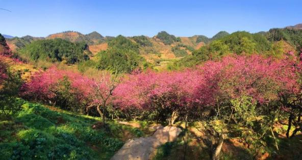 梅花树点缀在山间
