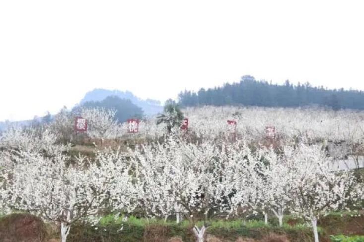 千果园樱桃花绽放地址:遵义市汇川区高坪镇仁江村
