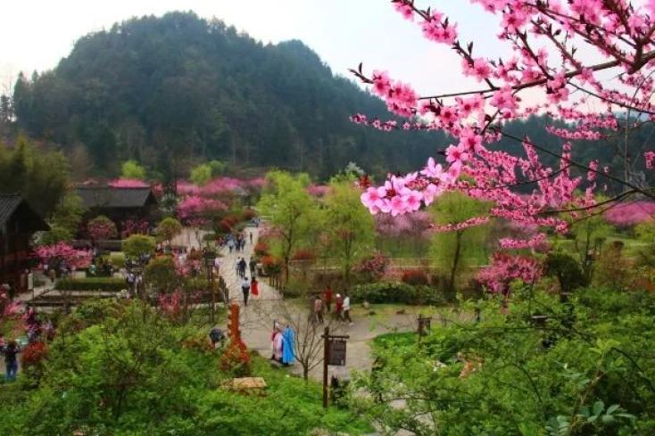 这里的桃花美艳动人,桃花的枝条会如柳枝般随风飘动,姿态甚是优雅,一阵微风拂过脸庞夹杂着桃花的芬芳,真的有种要醉倒在这桃花的温柔香里。