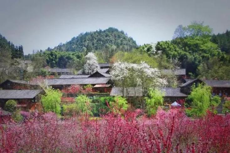 一颗颗桃花树夹杂在一间间民宿之中,构成了一幅美轮美奂的十里乡村画廊。