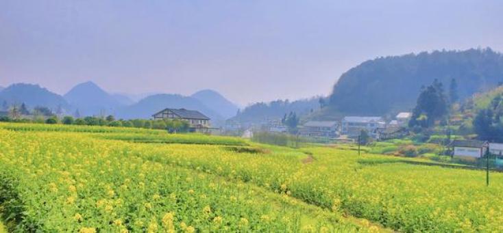 花茂村 图源/播州区文体旅游局乡愁是花茂村镶嵌在青山绿水中的小楼和墙院,花茂民居多为青瓦白墙,坐落于油菜花海中,黄白相间,生活最美好的样子莫过于此。