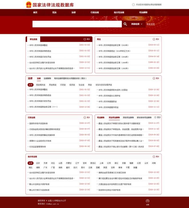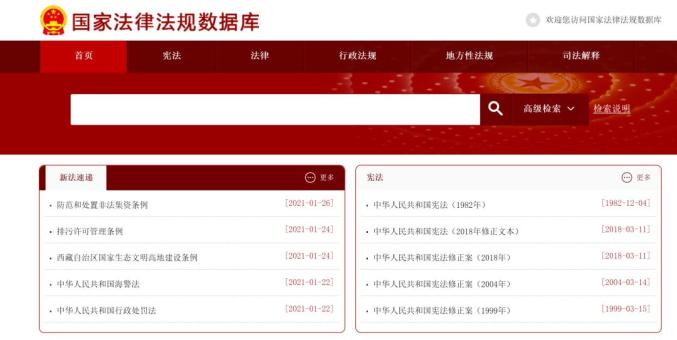 2021年2月24日,全国人大版国家法律法规数据库正式上线网址 https://flk.npc.gov.cn
