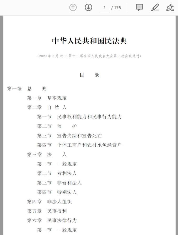 值得注意的是,国家法律法规数据库收录的数据有WPS版本和PDF版本两种格式,其中PDF文本为刊载法律法规文件的国家机关公报版本。用国家法律法规数据库中的法律法规文件公报版本,可以确保法条的准确性。大家要核实法条是否准确,也有了权威标准版本。比如,国家法律法规数据库收录的《民法典》就可以下载公报原版,见下图。