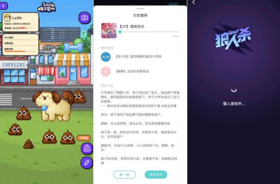 类似的新功能还有很多,在陌陌之后发展最快的SOUL算是当前探索速度最快的。在SOUL上,用户可以自己“饲养电子宠物”,用户与用户之间还能通过“PIA戏”等功能增加互动乐趣。此外,当前大热的“狼人杀”小游戏,在SOUL上也已进入内侧阶段。