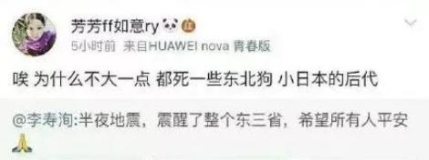 2018年5月28日凌晨,吉林松原发生了5.7级地震,灾情牵动了全国网友的心。然而,就在这一天,却有人借地震大肆辱骂东北同胞,被全国网民人肉。当天下午,警方即查明发帖网民为伏某某,女,44岁,江阴人。伏某某因涉嫌寻衅滋事罪被江阴市公安局依法刑事拘留。审查中,伏某某交代,其根本没想到自身言论会造成如此恶劣的影响,尽管在第一时间将帖文删除,但她还是收到了大量网民的声讨,最终等待她的是法律的严惩,这件事告诉我们,做人要厚道,不要愚昧无知,口无遮拦。