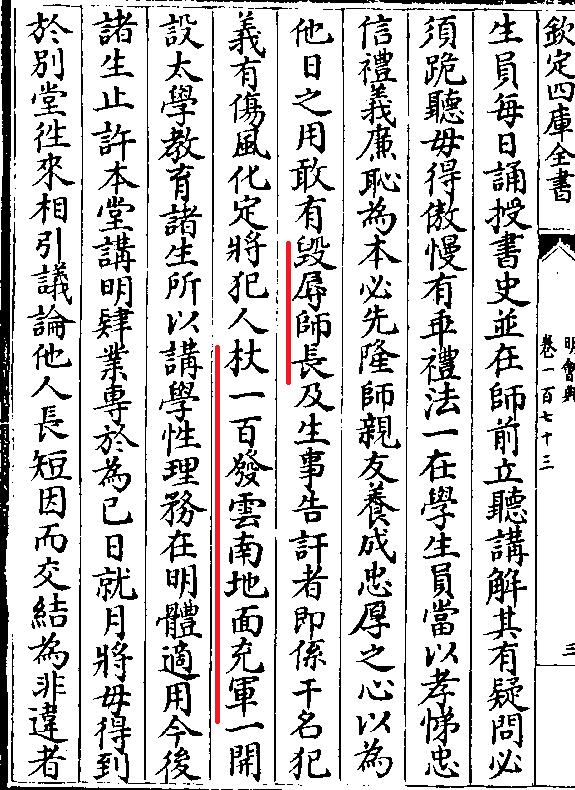 很严了是吧?还有更狠的。明太祖朱元璋时期,违反校规可能要付出生命代价!《明太祖实录》记载,洪武十六年(公元1383年)以文渊阁大学士宋讷为国子监祭酒(国家最高学府校长)。宋校长以狠抓校规著称,据《明会典》记载,当时国子监监规规定,“议论饮食美恶”(嫌食堂不好吃的),要“笞(打板子)五十,发回原籍”;“毁辱师长”(说老师坏话的),“杖一百,发云南地面充军”。