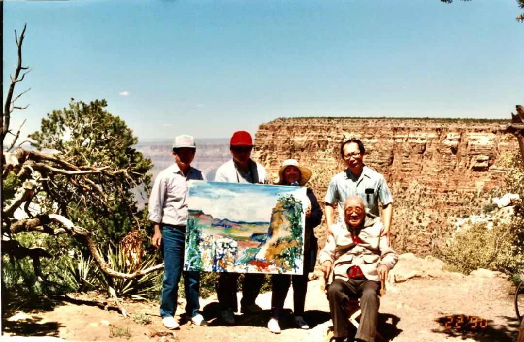 刘海粟在科罗拉多大峡谷刘海粟1988年第10次登上黄山之后,在上海举办了个展,对他来说最重要的工作已告一段落,在那个时间他想去美国看儿子。于是1989年刘海粟第一次来到美国,并在1990年做了去科罗拉多大峡谷写生的壮举。