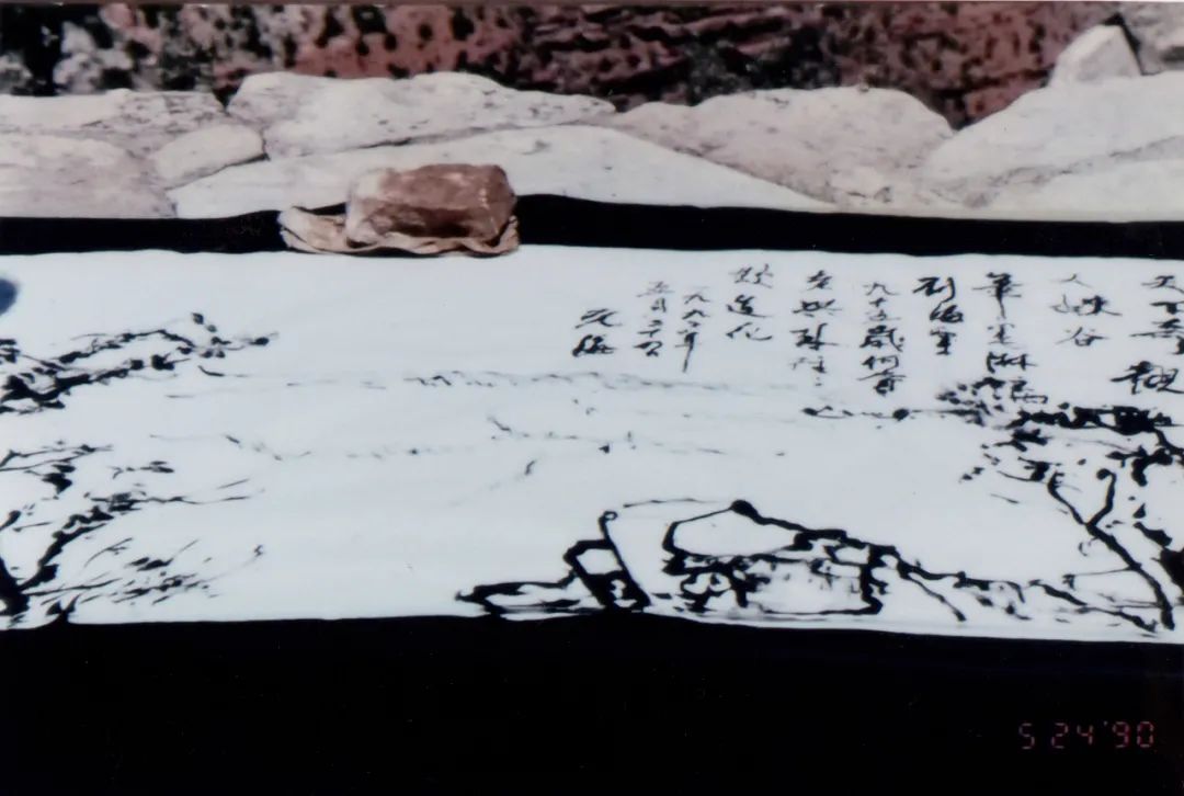 当时刘海粟先生已经95岁高龄,为了保证先生一行安全,张善利先生请了一位医生全程陪同。在科罗拉多大峡谷写生的三天时间内,海老一共创作了三张画,两张油画,一张国画。从影像的记录上来看,这两张油画的表达,其实都是在践行他从黄山学来的对于自然环境的一种表达。老先生是犹豫的,因为黄山的秀美跟大峡谷的宏伟完全不同,但他还是画了两张非常好的作品。在两张油画画完之后,他说我要画一张国画,这完全不在计划之内,所有的笔墨材料都没带。张善利先生专程回去带了笔墨纸砚,再去到大峡谷,然后就在几块石头上,用石头压着宣纸,创作了一幅中国画,特别有意义。这是刘海粟先生写生精神的最好呈现。