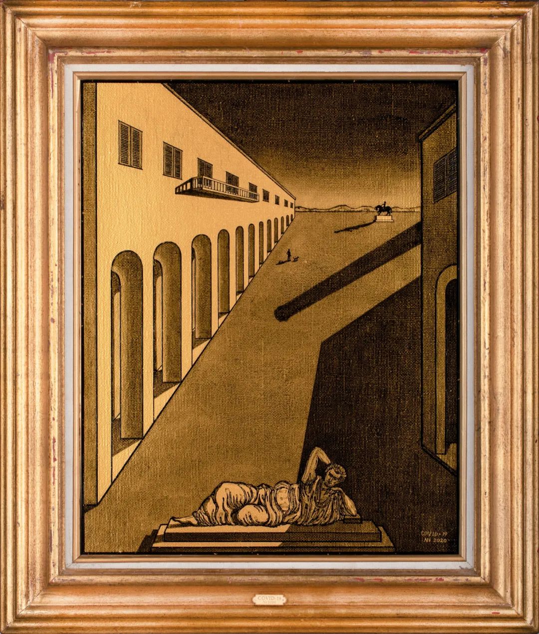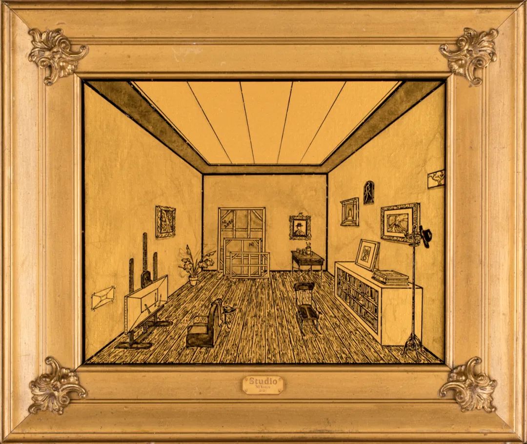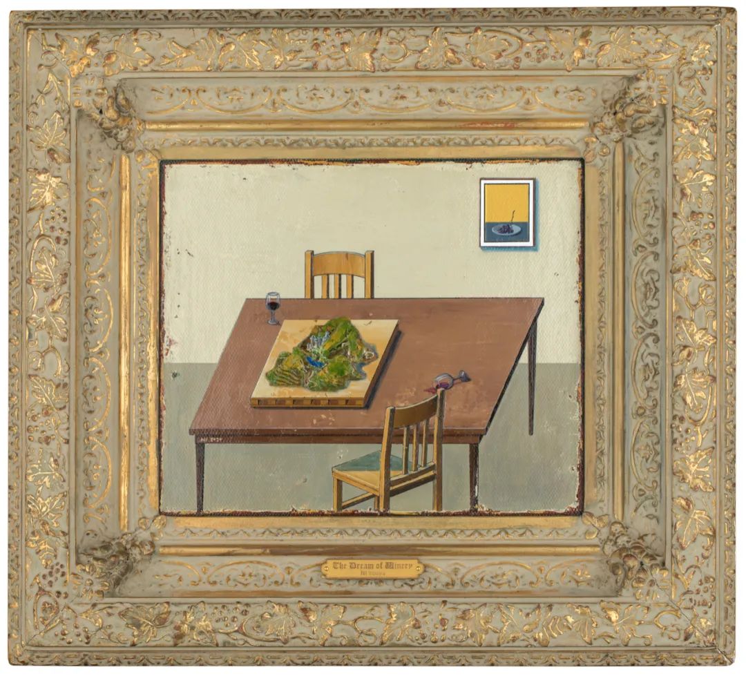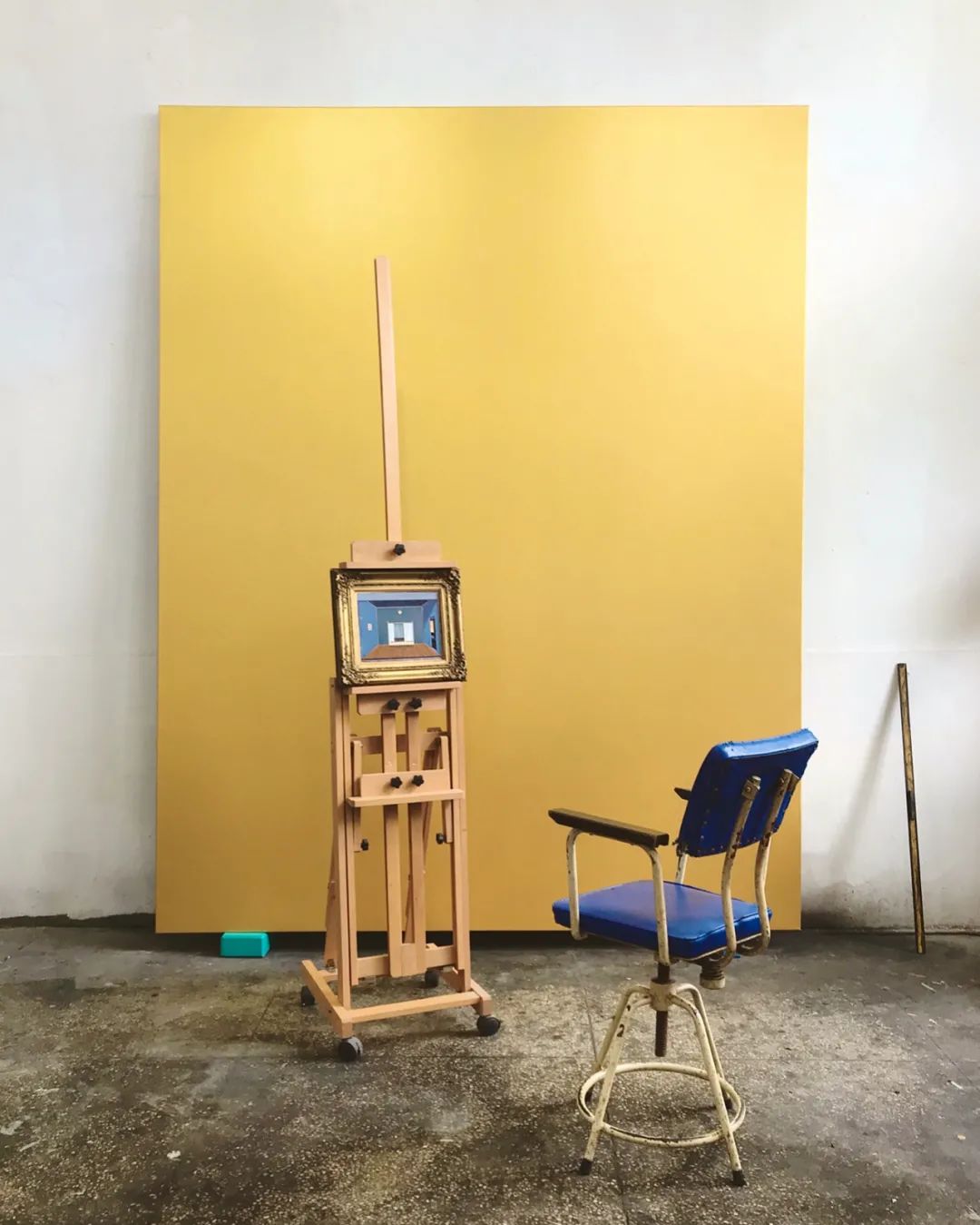 新系列的绘画,是在一批古董画框里描绘无人的空房间。画的内容十分应景:卧室、餐厅、床、工作室……各种各样的室内空间,是过去一年疫情里,全球人民待的最多的地方。