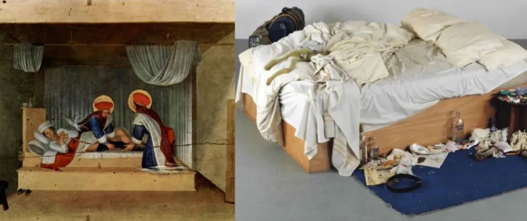 左:Fra Angelico画中卧室;右:翠西·艾敏《床》