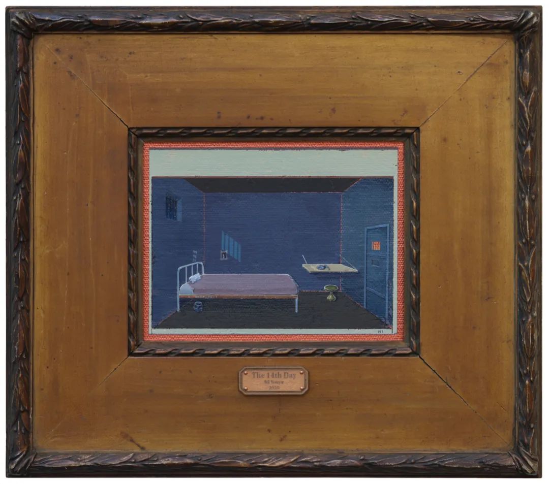 《第十四天》从卧室一点一点地变换,他还画了一张《第十四天》。“就是一个监狱。经典单人监狱,其实是一个更极简的卧室。”