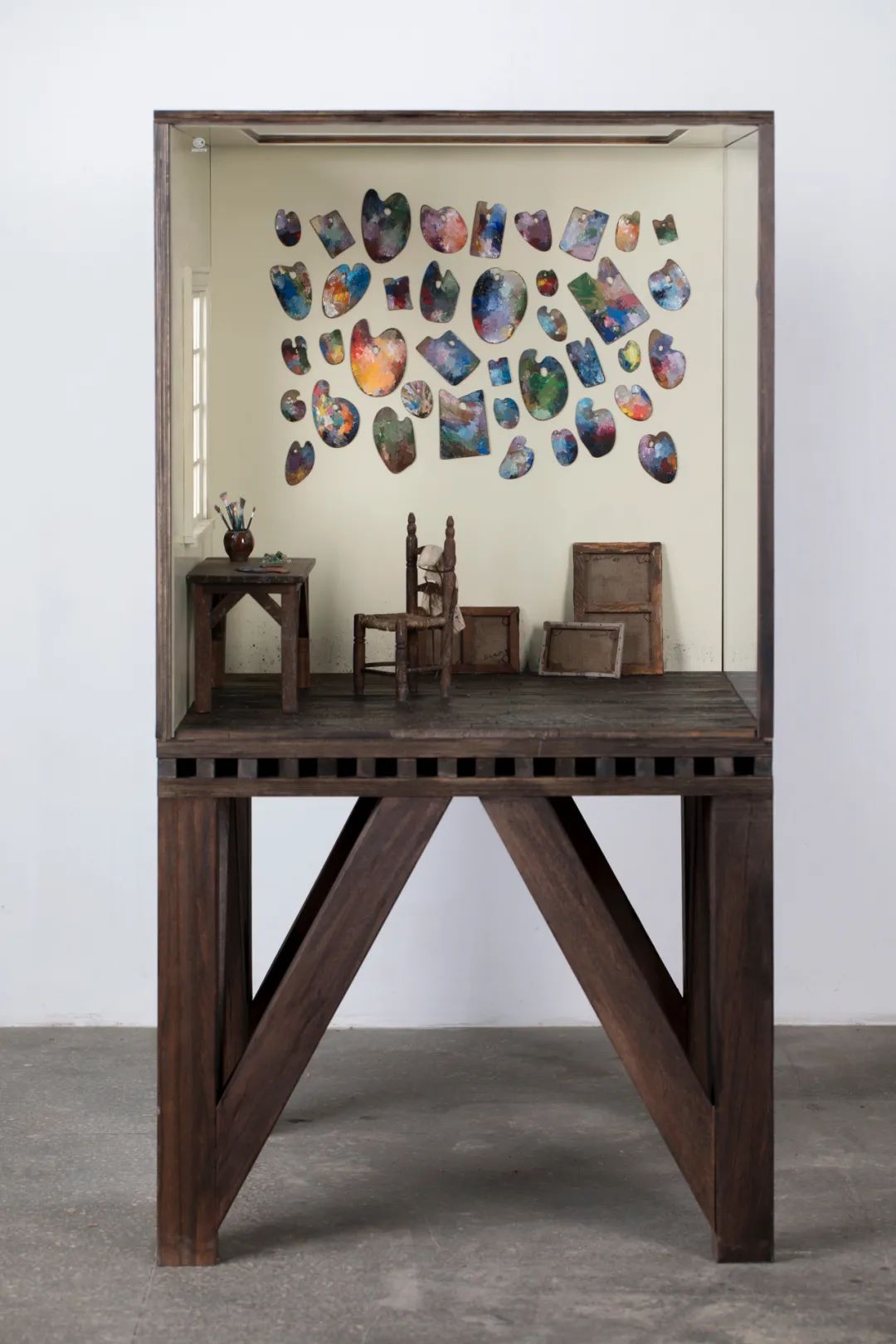 当代艺术的各种媒介,他几乎都是从零自学。布面绘画,木刻版画,雕塑,装置,摄影。如何绷画布?如何做底料?选择什么牌子的丙烯?涉及到装置就更复杂,每一件作品的方案都要面对新的材料问题。
