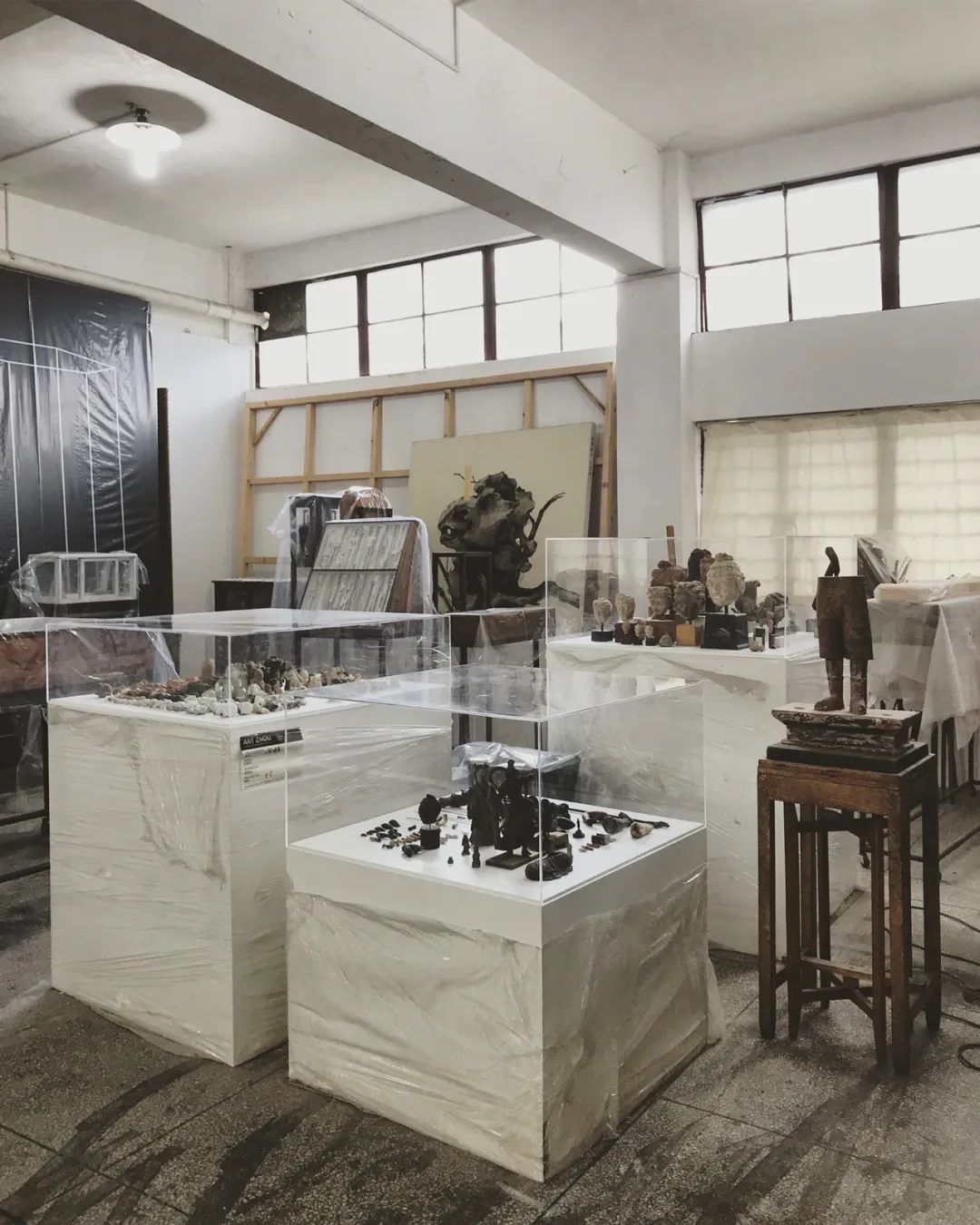 工作室480平左右,分了四个区域,仓库、画室、装置车间,还有一个常规的外厅。