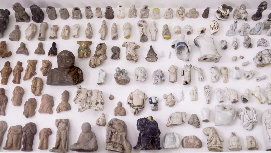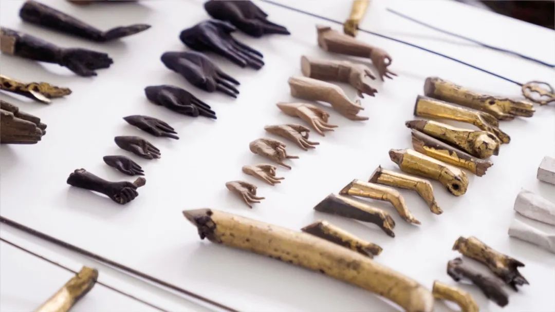 收藏的古代雕塑作品一个木制玻璃柜中,是公元三世纪左右的犍陀罗。“我的收藏被我的口袋所限制,要靠眼睛去弥补口袋的不足。”他说着,走到另一排长方形展柜中,整齐排列着一片15-19世纪的亚洲地区的古董木雕残件,很多是佛手。