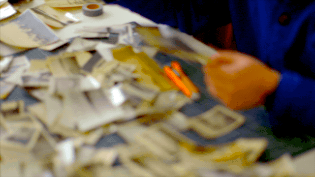 一包老照片、一块切割板、一把刀、一把尺子,材料十分轻便,在哪都能做。