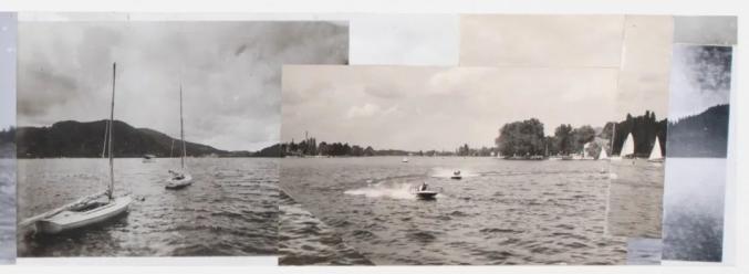 《逍遥游(环球帆船会)》与局部他还特意留下了小刀划破照片拼接的痕迹,“图像篡改在今天已经是一个司空见怪的事情了,我就是要让你看到一个不存在的虚构的风景被拼贴出来。这些小照片里面有一种隐性的暴力和张力。”