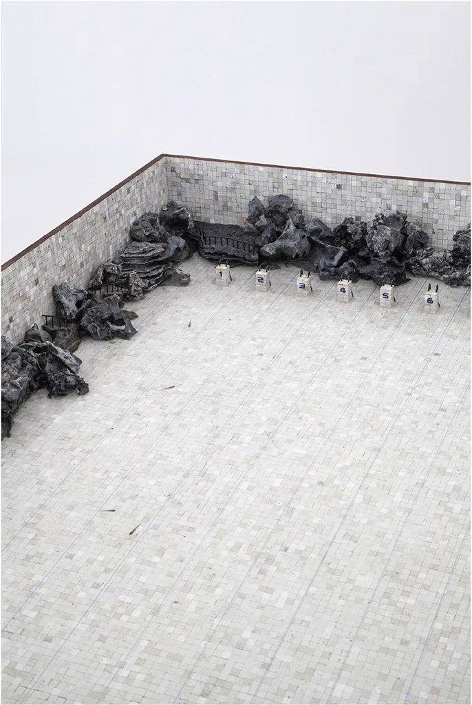 倪有鱼装置作品他还搜罗了海量的二手物品,古建筑构件、古董弹珠游戏机、老家具、老照片或者是许多留有“瀑布”痕迹的石头……