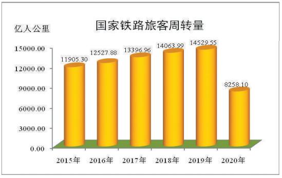 旅客运输。国家铁路旅客发送量完成21.67亿人,比上年减少14.12亿人,下降39.4%;国家铁路旅客周转量完成8258.10亿人公里,比上年减少6271.45亿人公里,下降43.2%。