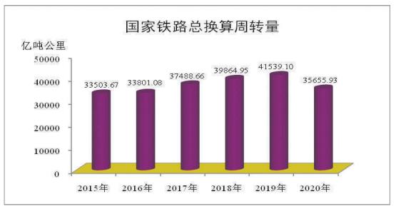 总换算周转量。国家铁路总换算周转量完成35655.93亿吨公里,比上年减少5883.17亿吨公里,下降14.2%。