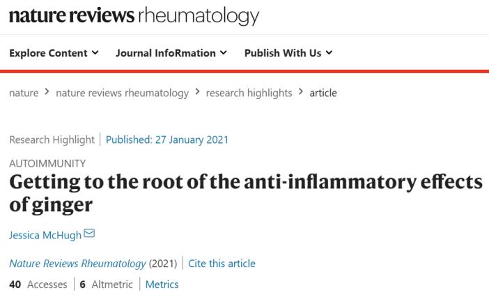 原标题:《Nature子刊:生姜“抗炎”大揭秘,治疗自身免疫病还远吗?》