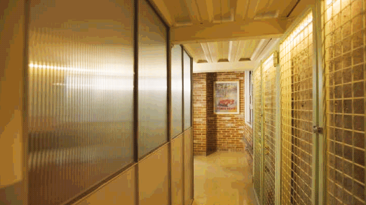 新砌的墙都采用了气泡砖,它是采用泡沫小颗粒与水泥凝结而成的,本身比较轻,不会增加建筑的负荷,但坚固耐用,也不易开裂,特别适合用来做室内隔断墙。客卧是用钢板和长虹玻璃围出来的一块区域,面积不到10㎡,满足一个简单的睡眠功能,视觉上很通透,同时也有私密性。