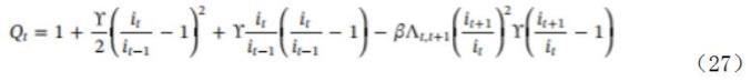 3.2新凯恩斯主义模型标准化的新凯恩斯主义模型描述了具有竞争性的非金融企业、将最终产品转化为投资的资本生产者、仅引入名义价格刚性的垄断竞争零售企业、具有代表性的家庭和货币当局的特点。根据中国人民银行的实践,货币政策遵循修正的泰勒(1993)规则,即根据货币增长率、产出和通货膨胀调整短期名义利率。