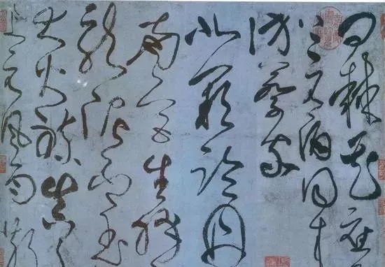 《古诗四帖》的书写是靠更多的曲线组合与线条的震荡,大部分打破了草字本身的阅读,行云流水的感觉非常强烈,完全成为了线条的符号组合和表现,几乎是字和字之间没有什么界线,但是当你还原每一个字的时候,每个字都非常精确精彩,这就是张旭给我们的启示。我们既要追求浪漫又要非常文雅,我们能把草书写得豪情万丈,也可以把楷书写的安详、优雅。