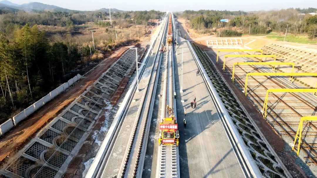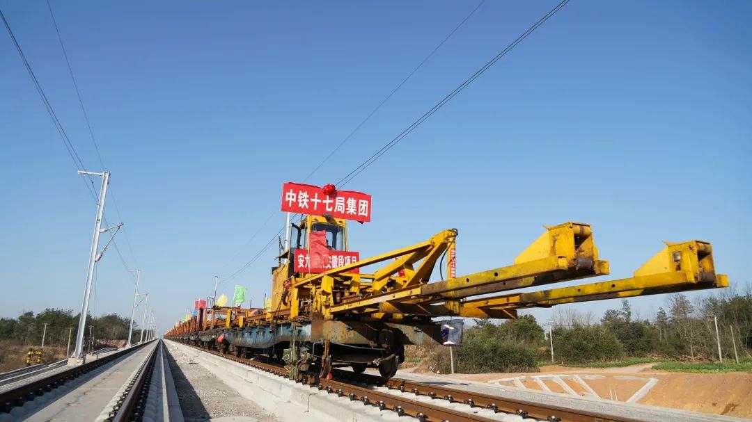 2月21日,安九高铁安徽段正线轨通。
