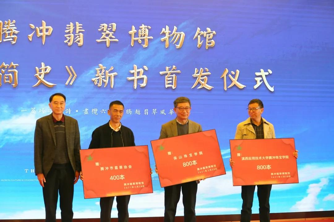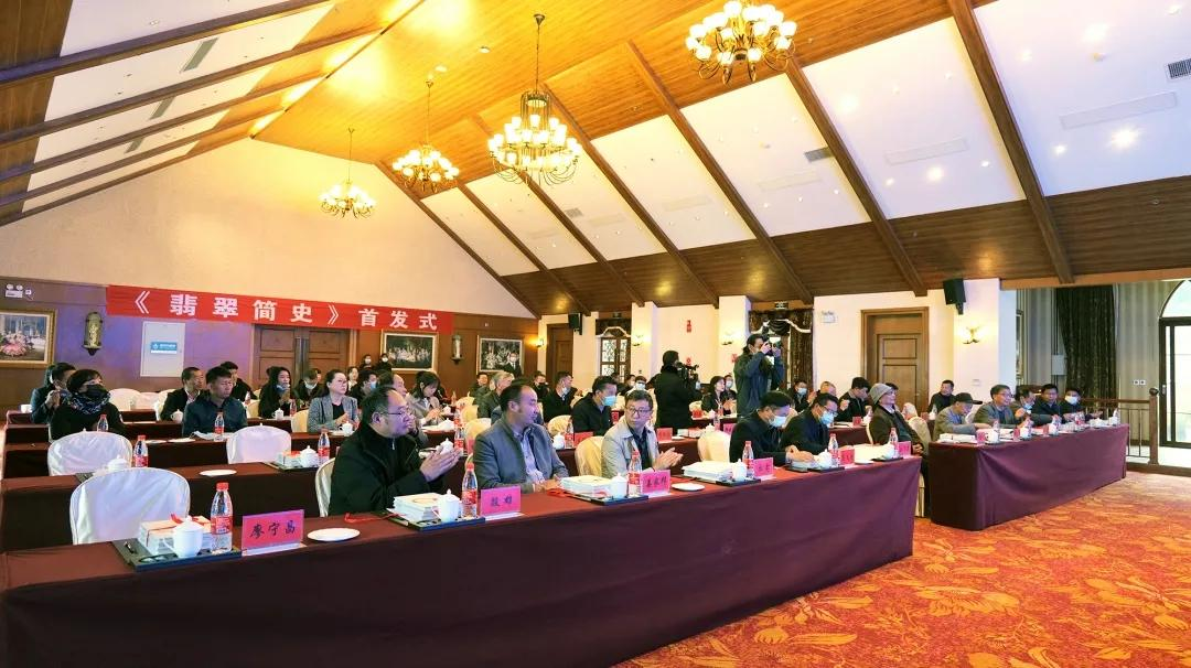 近日,《翡翠简史》在云南腾冲东山康养小镇恒益半山酒店宴会厅隆重举行。保山市、腾冲市相关部门领导,保山珠宝学院、滇西应用技术大学腾冲珠宝学院、腾冲石产业促进会、腾冲翡翠协会、腾冲琥珀协会、云南出版集团融媒体有限责任公司等相关单位领导,以及部分国内知名翡翠研究专家、学者近百人参加发行仪式,共同为这本尽览六百年腾越翡翠风华的翡翠史诗表示祝贺,并共同见证翡翠博物馆馆长黄永康先生向保山珠宝学院、滇西应用技术大学腾冲珠宝学院、腾冲市翡翠协会赠送《翡翠简史》。