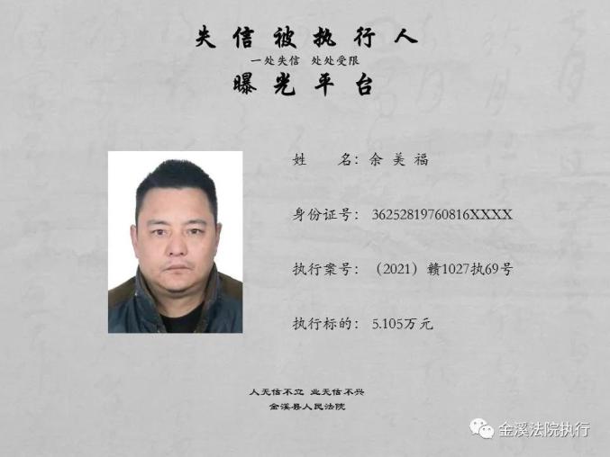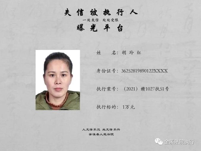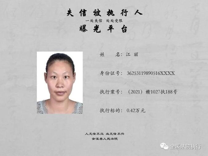 金溪县人民法院公布2021年失信被执行人名单
