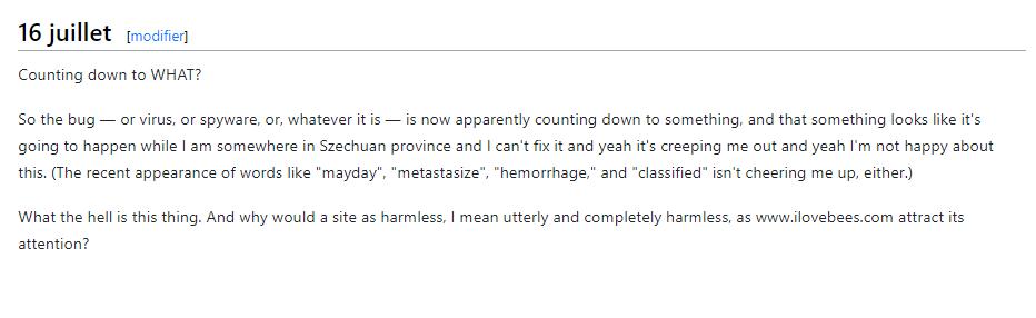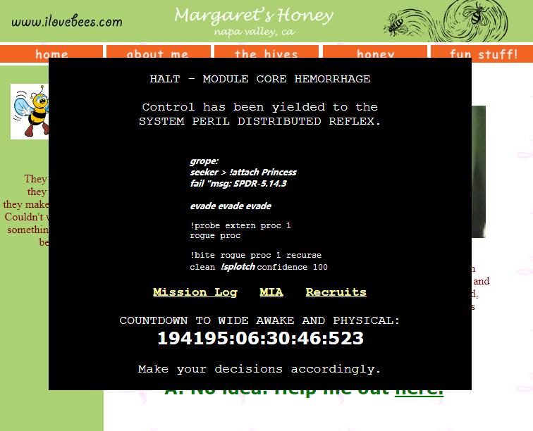 ilovebees 实际上是《 Halo 2 》在发售前搞的一次营销活动,从结果上来看它是非常成功的,因为这个活动让《 Halo 2 》的首周销售量打破了以往所有游戏的记录。而 ilovebees ,就是我在开头提到过的那种游戏,它属于一个特殊的游戏分类—— ARG( Alternate reality game ,替代现实游戏 )。