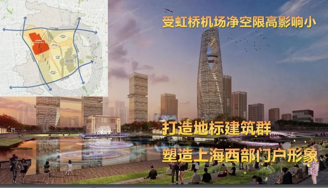 将打造世界级中央商务区和公共活动区。以TOD开发为导向,围绕轨道交通13号线西延伸纪翟路站、芳乐路站以及25号线前湾公园站(暂名)形成三大组团,集聚虹桥国家开放枢纽城市核心功能,近20个商办地块,总体开发规模近200万平方米,将做到每一个地块都会有轨交站点出入口,每一个组团地上和地下都会有效积极衔接,实现轨交站点与开发地块的无缝对接,同时结合TOD站点设置的三组高层建筑群落,以260米的地标建筑云霄塔为核心,形成起伏有致、富有韵律的城市天际线,打造富有经济活力和文化魅力世界级中央活动区。