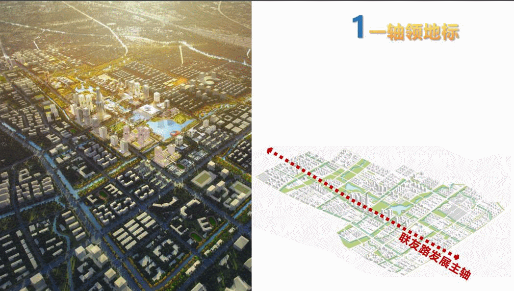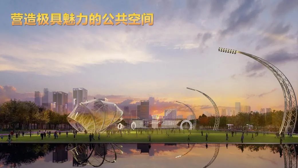 将构建“1238”的城市空间布局。“1”即以联友路为一条轴线引领城市地标,“2”即以彩虹湖、霁月湖两个湖面集聚城市活力,“3”即以三条城市休闲公共走廊联系中央活动区、科研创新、国际社区等八大功能片区。
