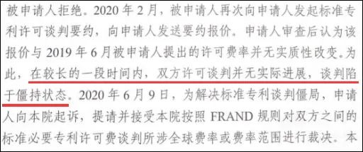 为此,在较长的一段时间内,双方许可谈判并无实际进展,谈判陷于僵持状态。