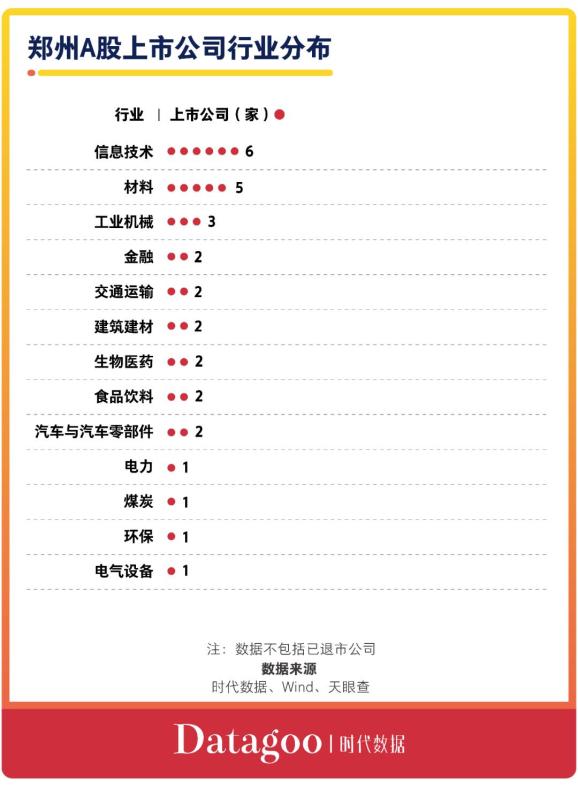 涉及13个行业,信息技术行业居多郑州经济的发展离不开制造业的发展。作为我国中部工业重镇,郑州借助其纵横交错的交通枢纽优势以及多个国家级产业园区共同开发的优势,逐步形成以装备制造业为核心,不断推进电子信息产业、汽车制造产业、新材料产业、新工业产业等新兴产业的发展。