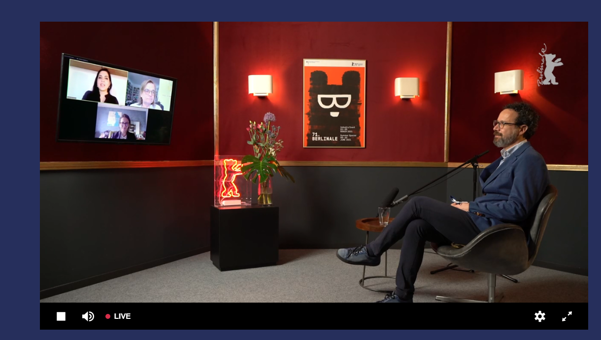 柏林电影节艺术总监卡洛·沙特里安通过与评委远程连线。