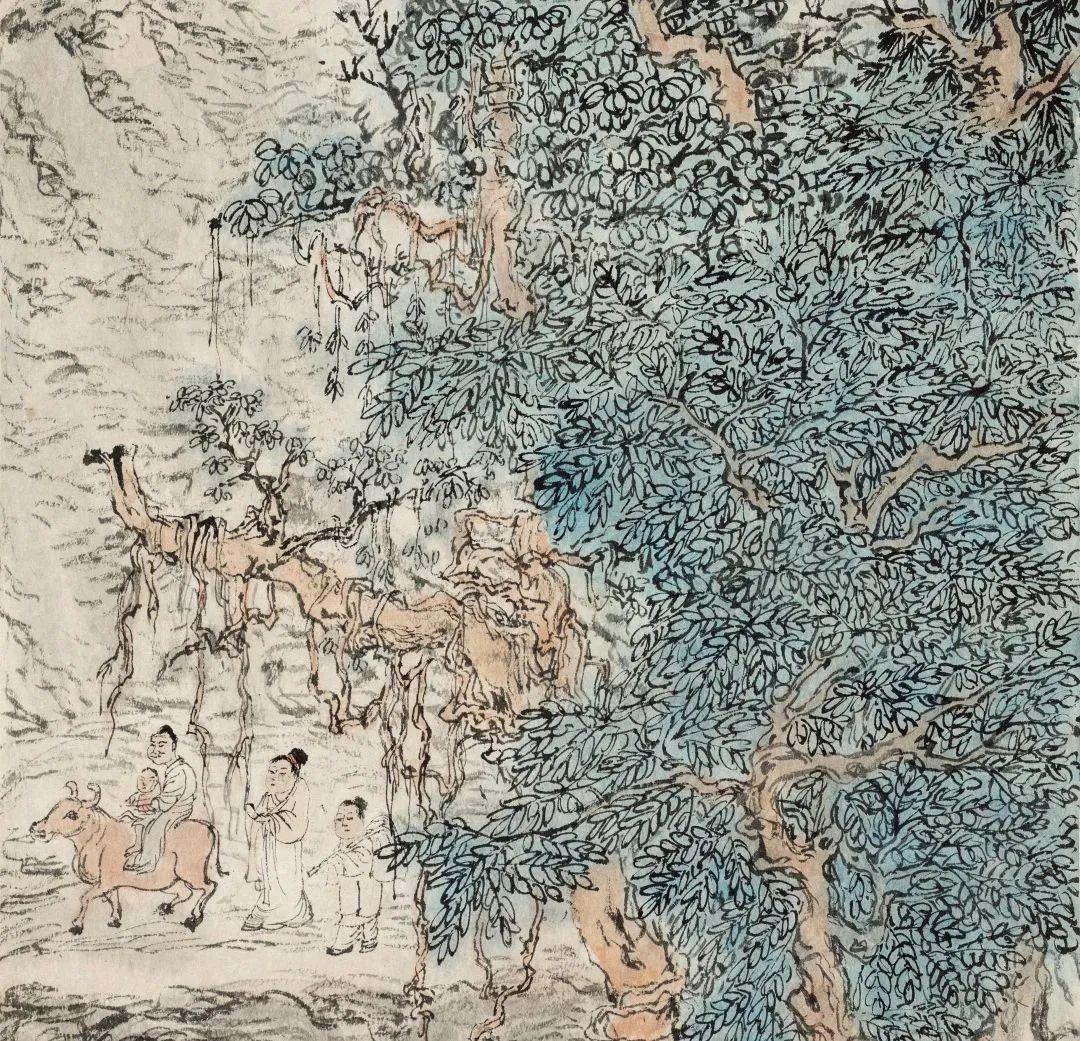 临王蒙葛稚川移居图(局部)·夹叶画法