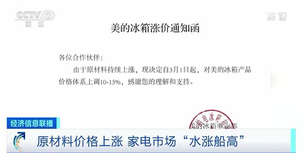 记者梳理发现,从去年以来,奥克斯、志高等品牌就已经纷纷发出涨价通知,近日美的又发布通知自3月1日起,美的冰箱产品价格上调10%到15%。业内人士认为家电涨价的主要原因是铜、铝、塑料等原材料价格快速上涨导致。以铜为例,当前价格已经涨到了每吨近6.7万元,较去年同期上涨近50%。