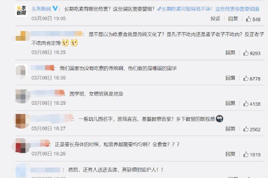 微博截图网友愤怒十分可以理解。因为过度的素食主义饮食可能导致人体胆碱摄入不足从而影响大脑健康。胆碱对脑部健康,尤其是胎儿发育阶段的脑部健康至关重要。由于人体肝脏产生的胆碱不足以满足机体需求,因此需通过膳食补充,而膳食胆碱主要来源于肉蛋奶制品。儿童时期是人大脑发育的关键时期,素食对儿童大脑健康的影响可见一斑。另外,孕妇和哺乳期女性缺少胆碱摄入也会影响胎儿大脑健康。