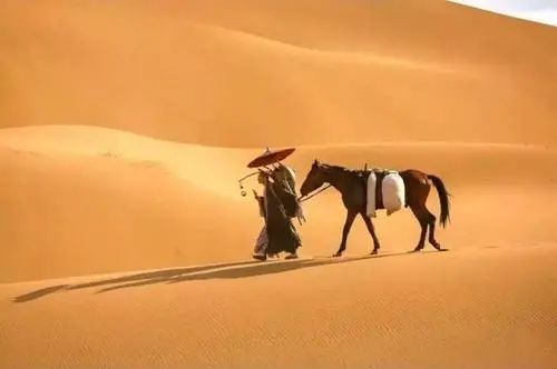 而后的人生,大体上可以分作两段:前一段是取经。唐太宗贞观元年(627),玄奘和尚混在“随丰就食”的逃荒民众中离开京城长安,沿着河西走廊一路西行,赴印度游学求法。当时,他是偷越国境出去的,并不像《西游记》中所讲的,受到皇帝的礼遇,“备下御酒,发放通关文牒,送至关外”。