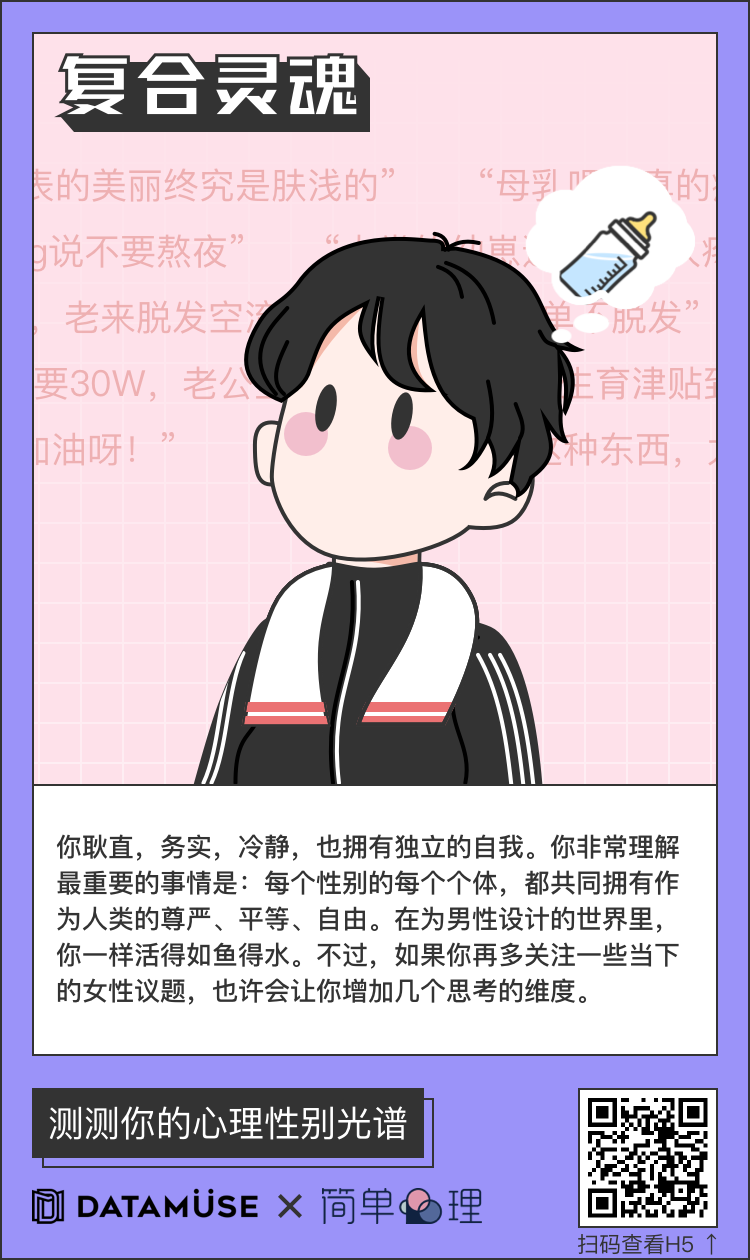 点击这里或扫描下方二维码,即可进入「心理性别光谱测试」,获得你的专属海报。