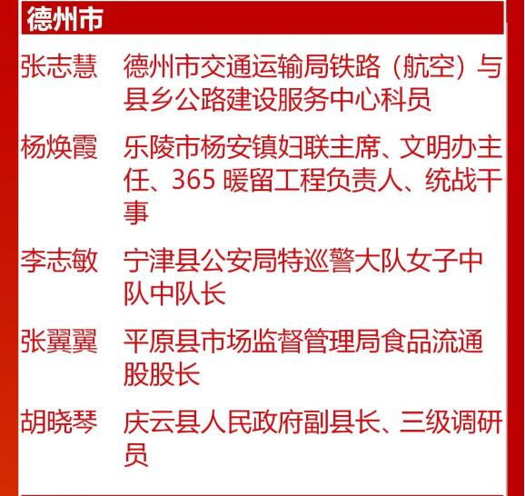 全国巾帼建功标兵名单(德州)