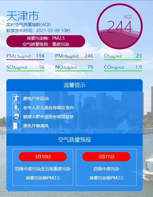 天津空气质量已达重度污染级别