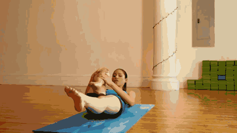 做法:仰卧的姿势,背部紧贴瑜伽垫上,抬起一条腿,并在空中保持伸直,将另一条腿的膝盖拉至胸前,用对侧的肘去触碰它;轮流重复左、右腿的动作。