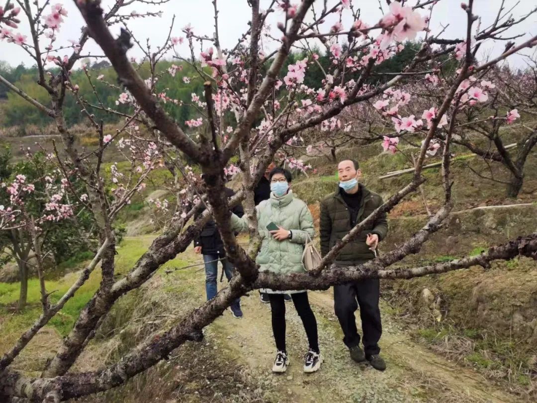 长岭村是城西街道重要的水果种植村庄,果园面积超过3500亩,几乎家家户户都有从事水果种植。3月初,春燕回巢,早熟品种红桃已然开花,粉红娇嫩的花朵在料峭春寒中更显柔弱。
